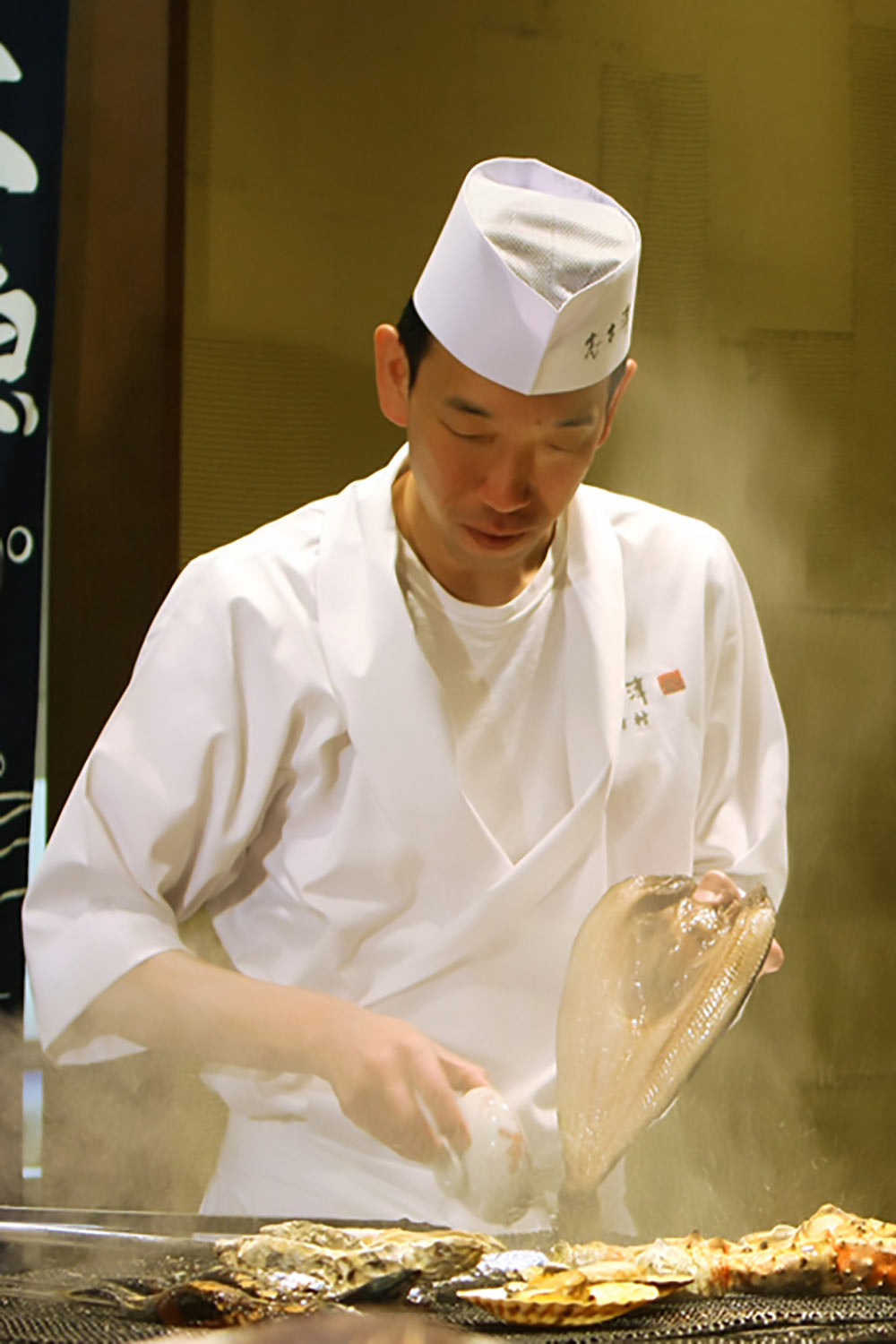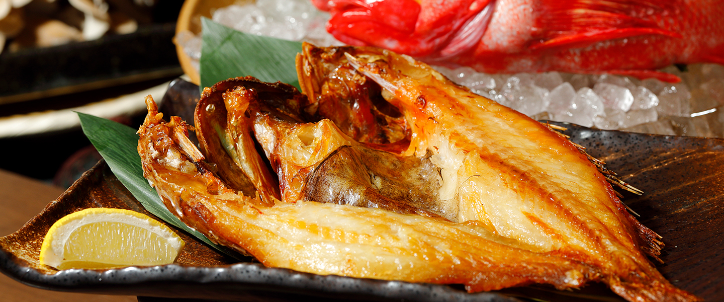 炉端で焼き上げた旬の魚や、貝料理はふっくらとした身がたまらない蒸しアワビと蒸し牡蠣をご堪能ください。
