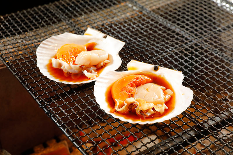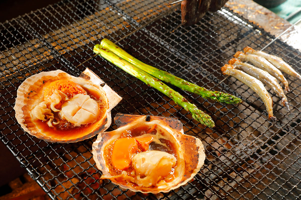 魚介類はもちろん、肉や野菜など北海道の新鮮な山海の幸を、臨場感たっぷりの炉端焼きスタイルでお召し上がりいただけます。