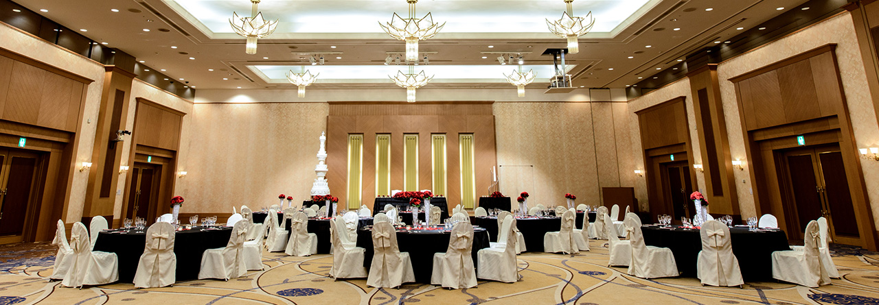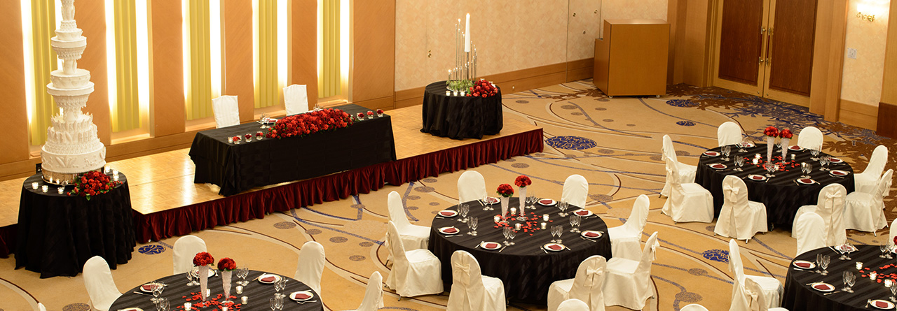 6mの天井高など特徴を活かした会場レイアウトで、華やかな雰囲気に浸ることができます。