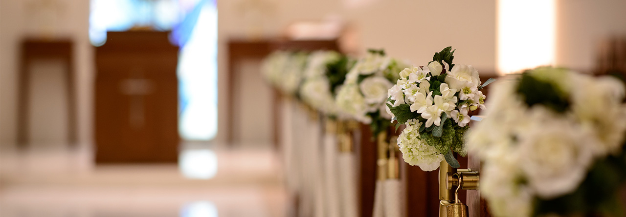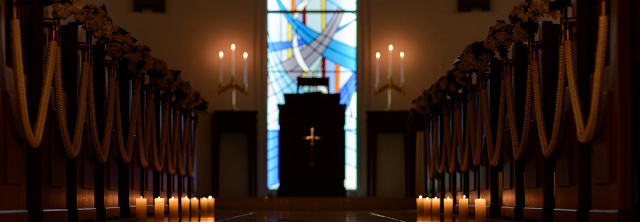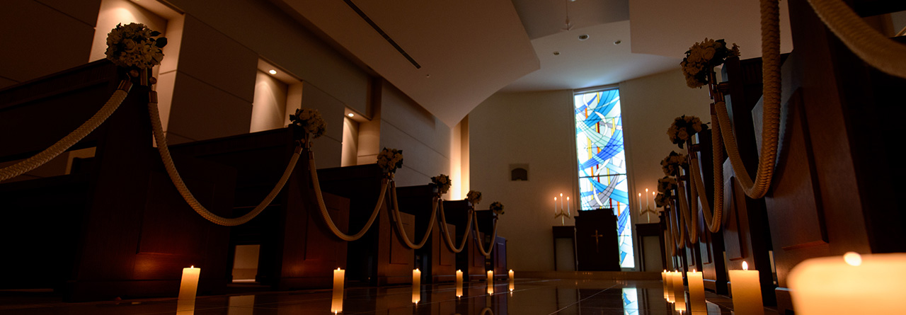 キャンドルに導かれる憧れのヴァージンロード。永遠の愛を誓うおふたりをなりやまない拍手がつつみこみます。