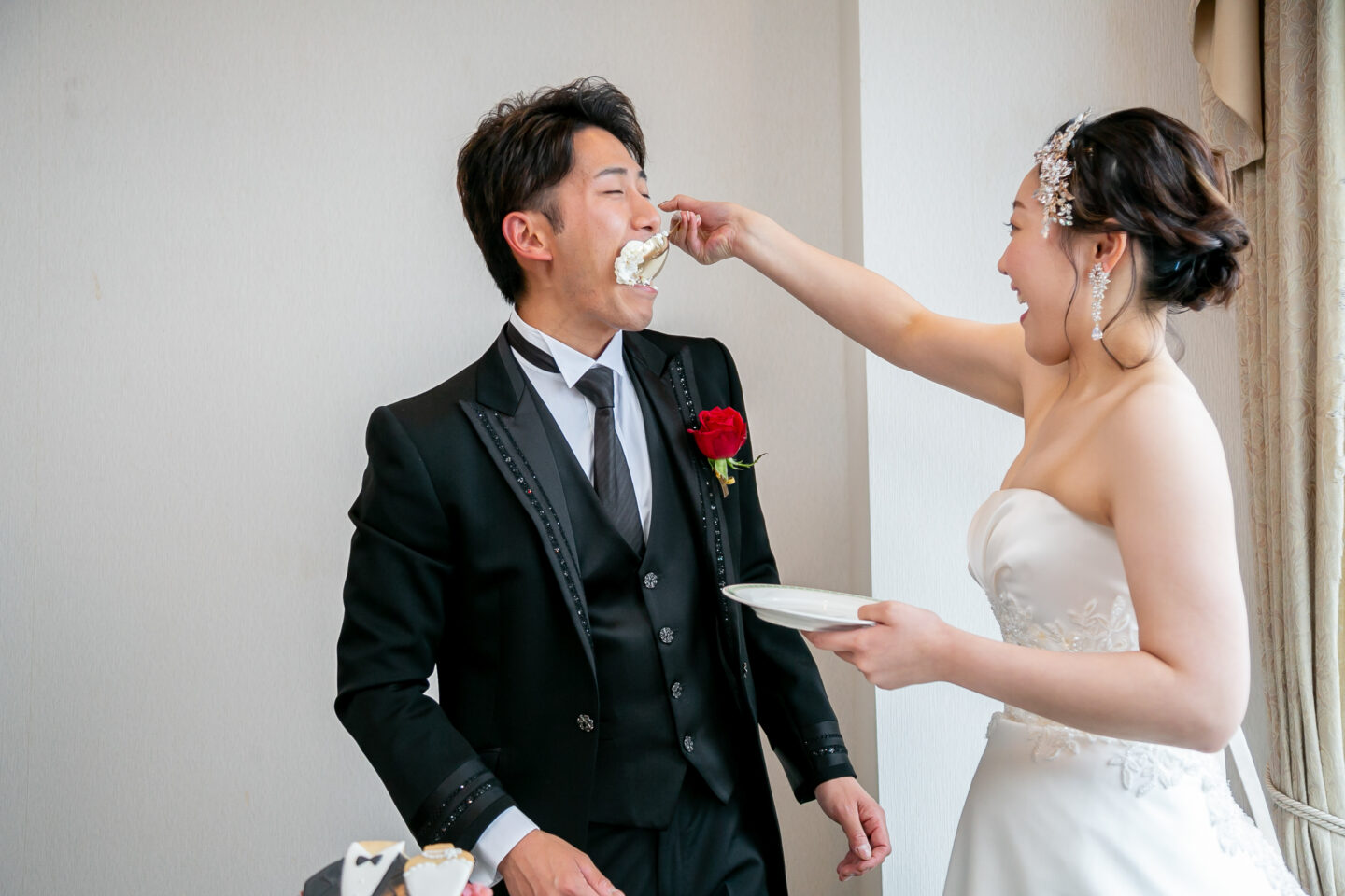 当日は、午前中を他会場でのロケーションフォトの時間、午後からホテルに戻り挙式というイレギュラーなかたちを取らせて頂きましたが、準備の段階から午前午後1日を通していいものとなるようたくさんのサポートをいただきました。